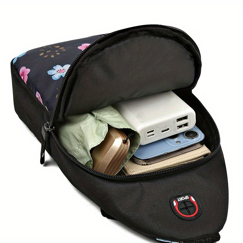 Women's casual nylon chest bag with adjustable shoulder straps and zipper closure, solid color, random pattern, polyester lining, stylish mini canvas crossbody bag, painted edges, random direction of upper zipper