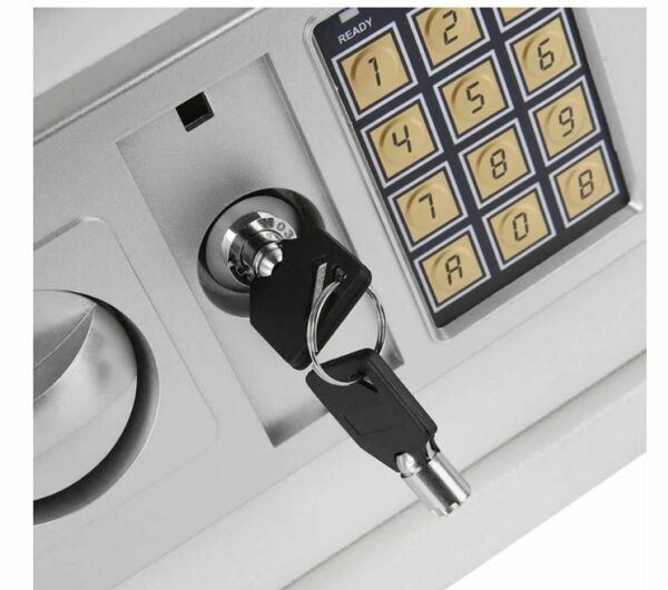 -The compact electronic safe offers security and stability and is an optimal solution for protecting valuable items from unauthorized access