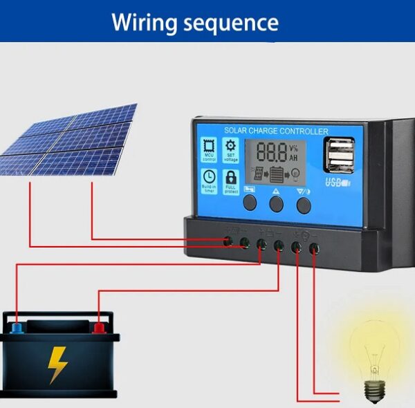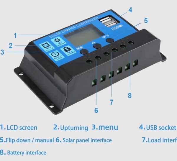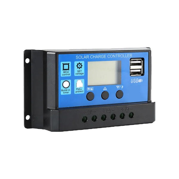 -Solar Charge Controller Dual USB Output with LCD Display, PwM Battery Charging. Adjustable Controlling Parameters of System