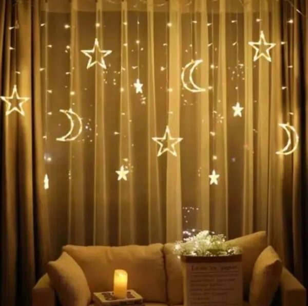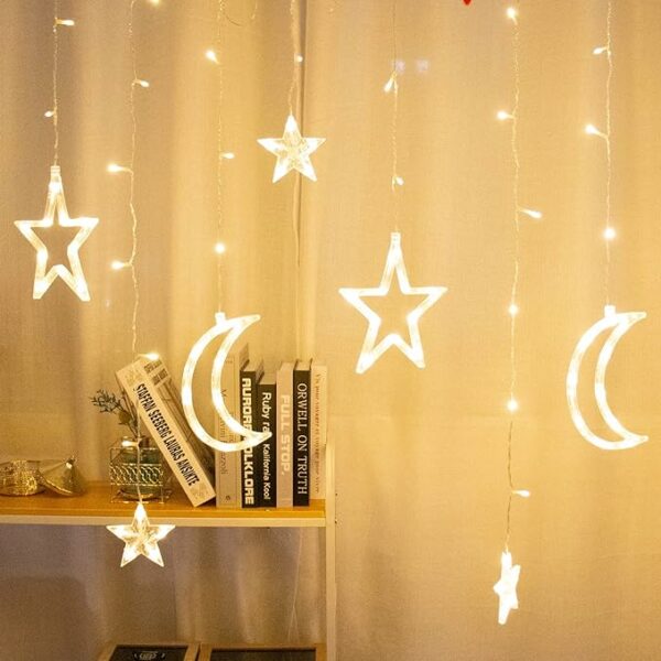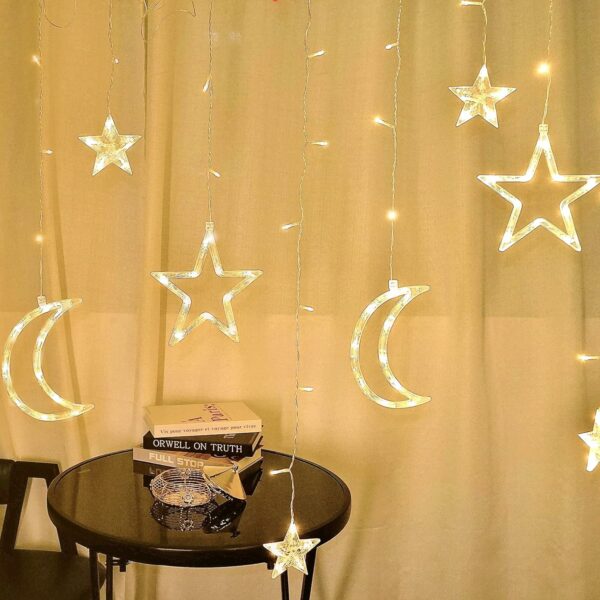 -Star-shaped + moon-shaped curtain Light It can not only be used as Christmas, party, wedding, Eid decoration, but also very suitable for daily use, such as hanging in outdoor decorations, balcony, hanging curtains, glass doors, bedroom decoration, all year round can maintain this warm atmosphere