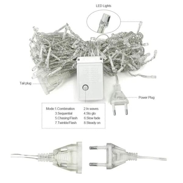 ZYF-99 LED Fairy Curtain Light With Tail Plug Extension White 3×0.5m